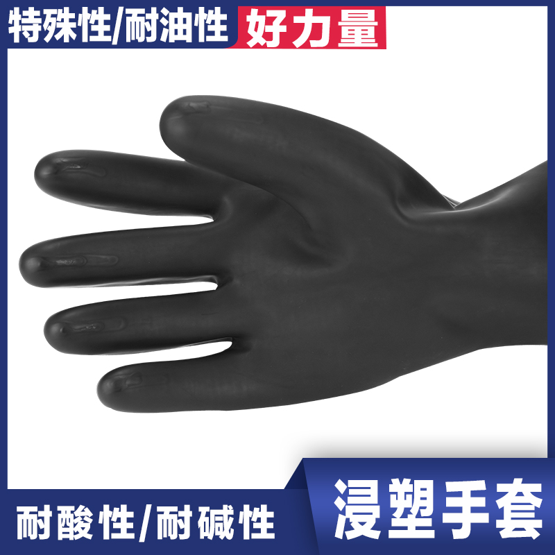 Acid and alkali resistant black chemical lengthened thickened non-slip waterproof industrial latex wear-resistant labor protection rubber gloves have great toughness