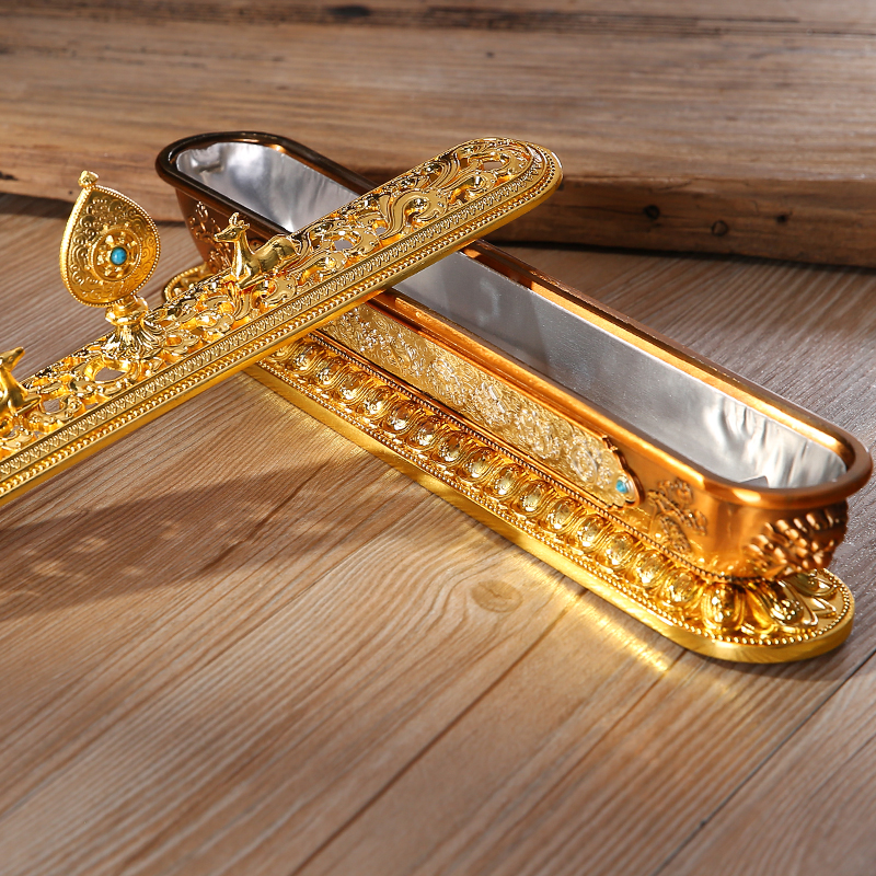Nepalese Tibetan-style reclining incense burner home for Buddha eight auspicious line incense copper alloy long incense box aromatherapy stove large ornament