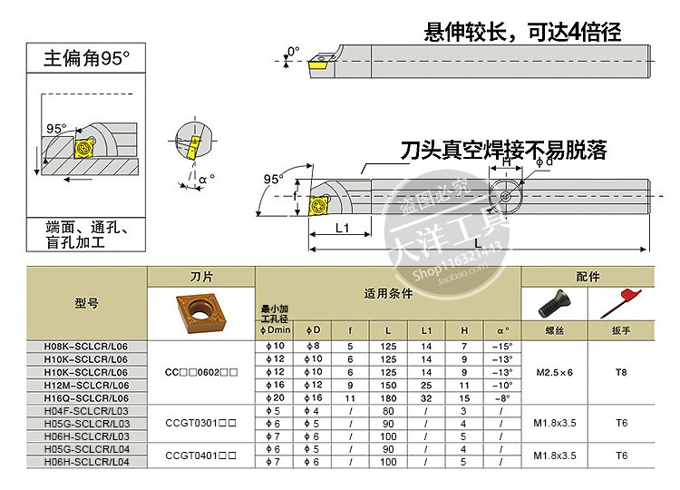 High-speed net anti-vibration inner hole turning tool 95 degree boring tool bar diamond SCLCR SCLCL end face blind hole