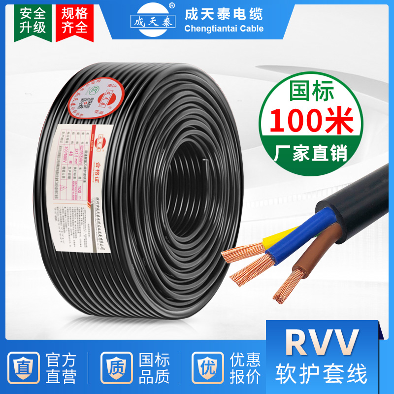 RVV Chengtiantai wire household national standard 4 square pure copper core 3 core cable sheath wire 2 core 5 core home improvement cord