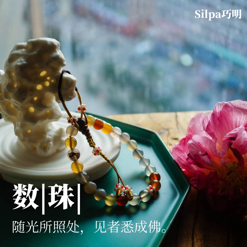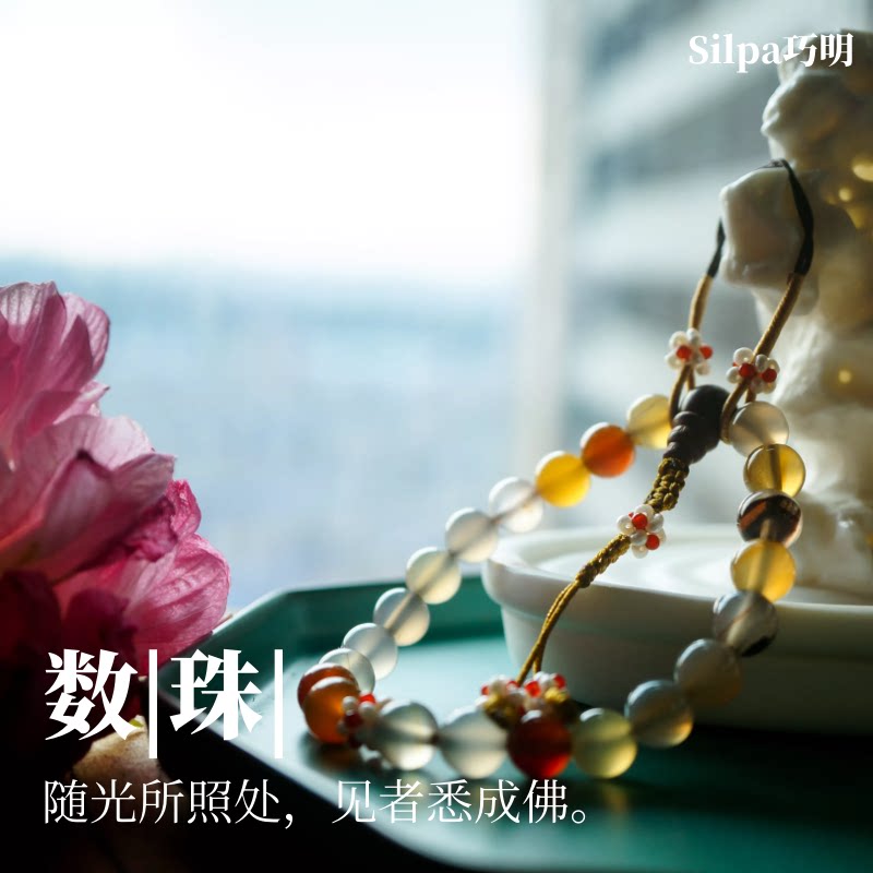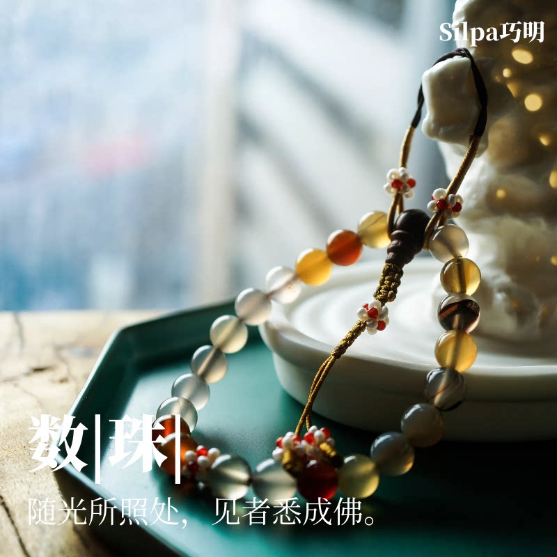 Qiaoming) Counting beads) Natural colorful agate pearls, organic gemstones, flower balls, rosary beads, palace ladies practice