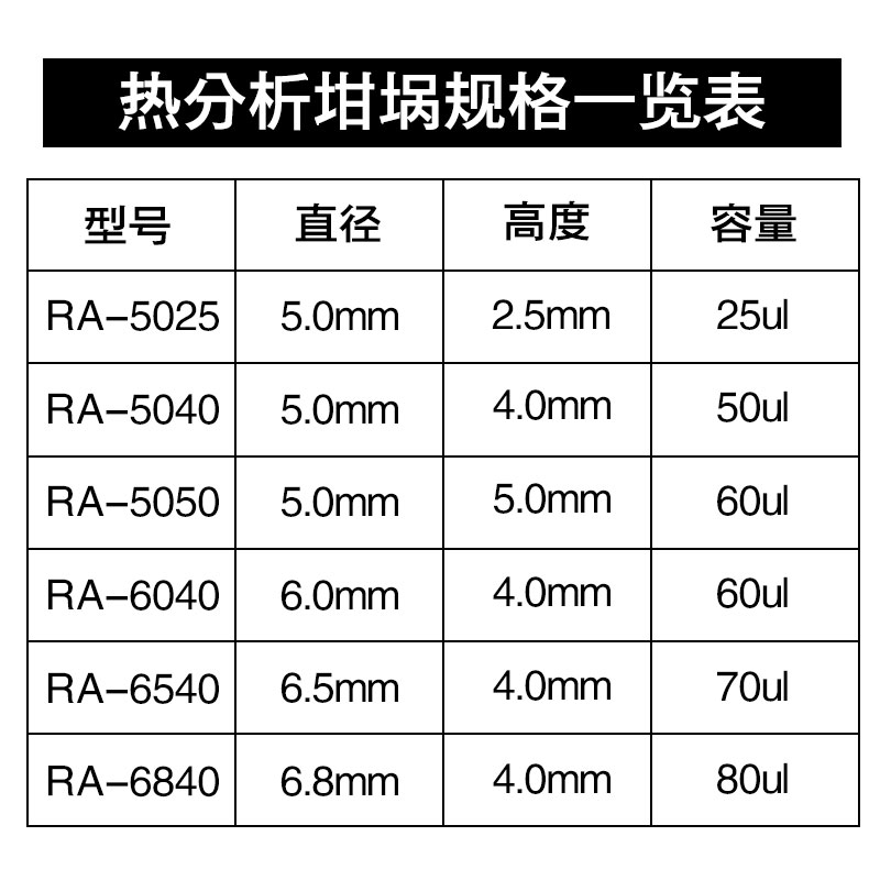 Φ5*2 5mm 25ul with lid Φ5*4mm 50ul with lid Φ5*5mm 60ul with lid Φ6*4mm 60ul with lid