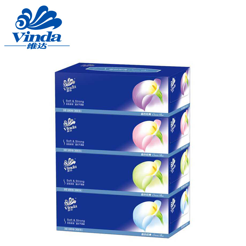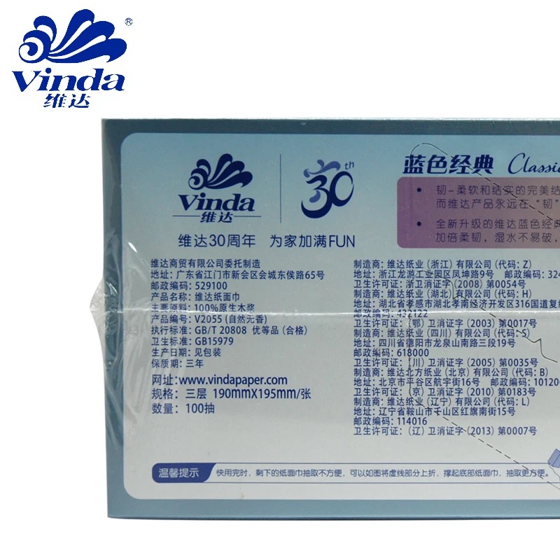 V2055 vida boxed paper blue classic 3-layer 100 smoke-free napkin face towels paper 40 box whole box-Taobao