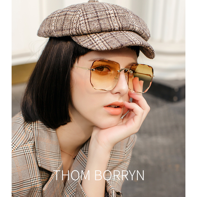 2022 new style sun glasses female ins vibrato net red sunglasses female anti-UV yellow large frame glasses