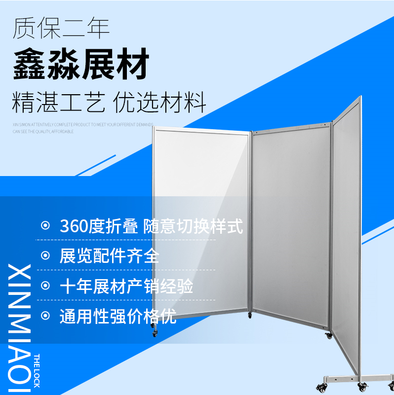 New Hotel Temporary Meeting Partition Folding Folding Screen Double Sided Available Aluminum Alloy With Wheels Advertising Quick Exhibition Stand