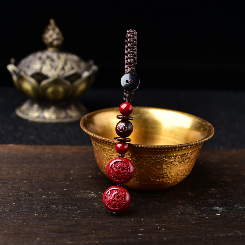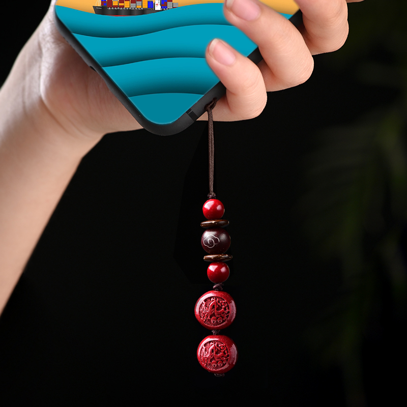 Key buckle red rope Handmade Sand Round Pearl Handmade Sand Pendant Worthy of the Crystal Black Beads Necklace Pendant with Sand Pendant Beads Necklace Pendant sandal pendant matching sandalwood Handmade key buttoned with mobile phone sling