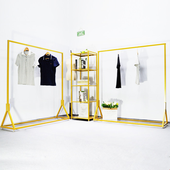 Clothing Store Show Show Ground Style Gold Color Combo Iron Art Bag shelf Ou style brief hanging clothes display shelf-Taobao