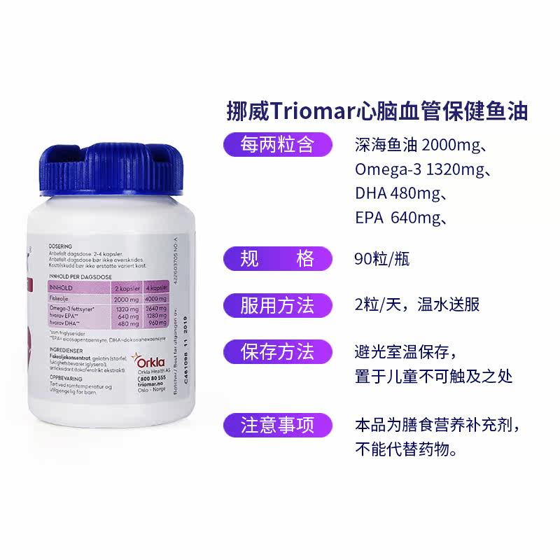 Norwegian import Triomar heart deep sea fish oil Omega 3 Soft capsules to protect the heart cerebral vascular EPA