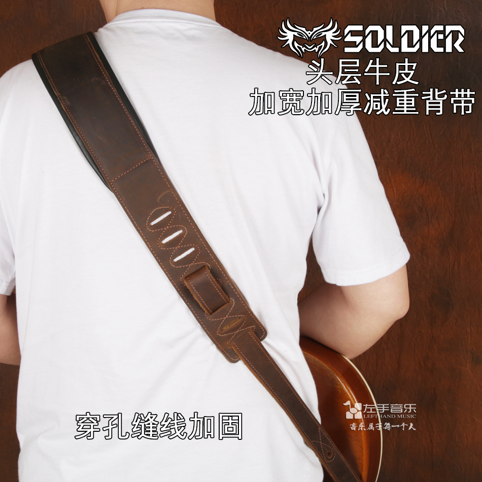 Soldier's first layer of real cowhide folk Wood electric box bass guitar strap classic retro personality knot thick shoulder