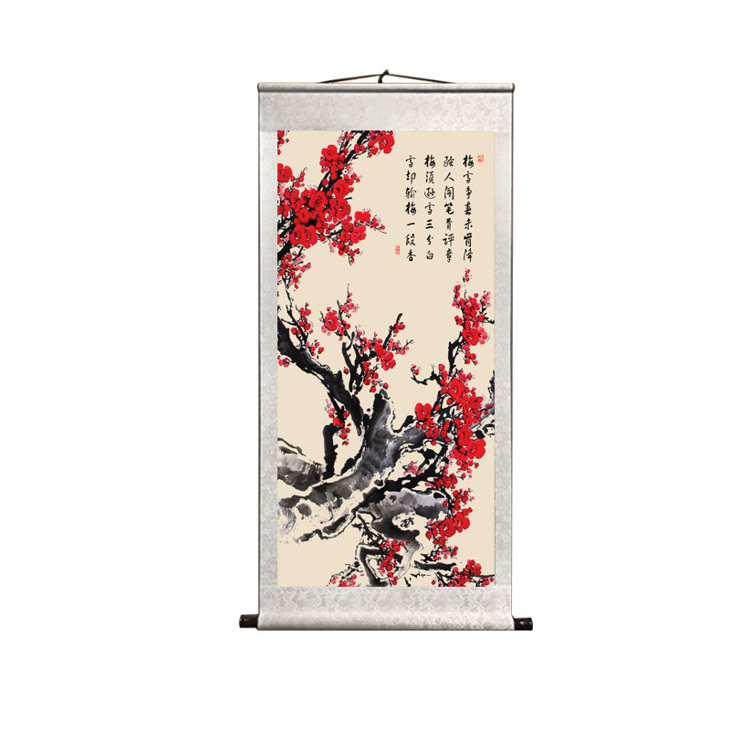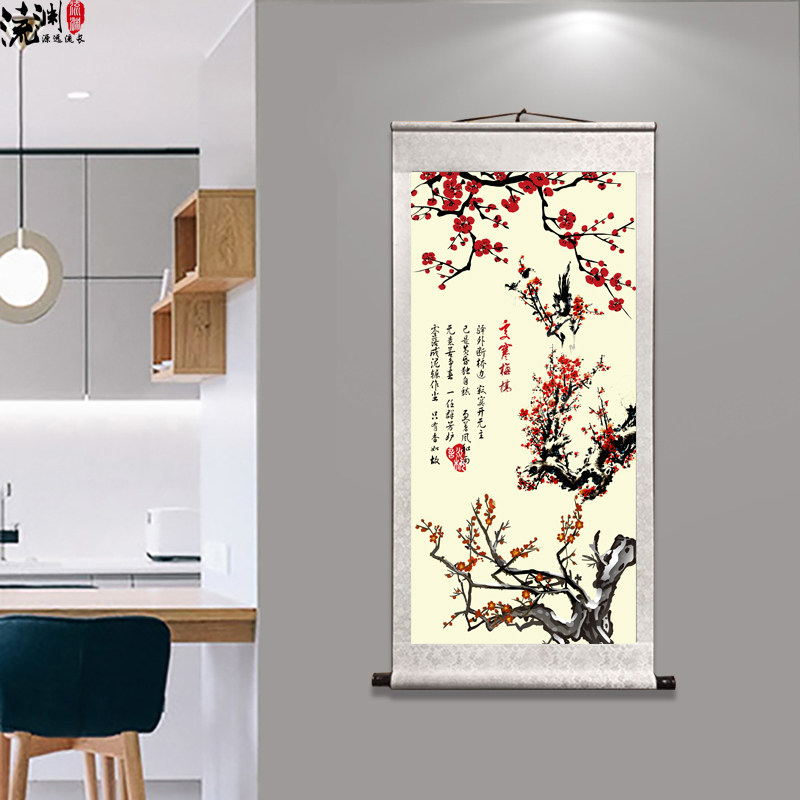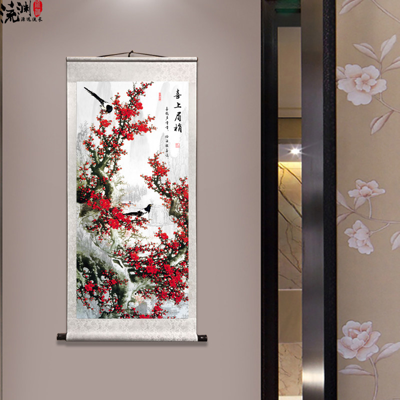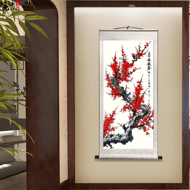 Happy brow Chinese painting plum blossom flower and bird painting ink painting living room bedroom decoration painting porch hanging painting red plum spring picture