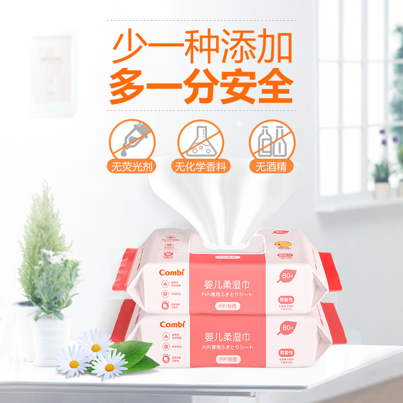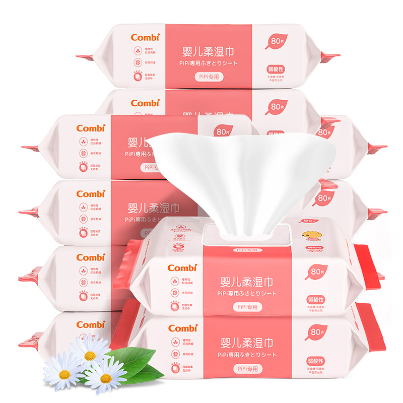 Combi Combe baby wet towel fart special baby baby wet wipes 80 draw with cover * 12 packs