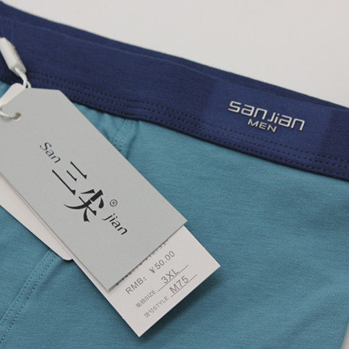 Triple tip M75 men's pure cotton flat corner underpants big code high waist four-corner shorts Young full cotton pants underpants-Taobao