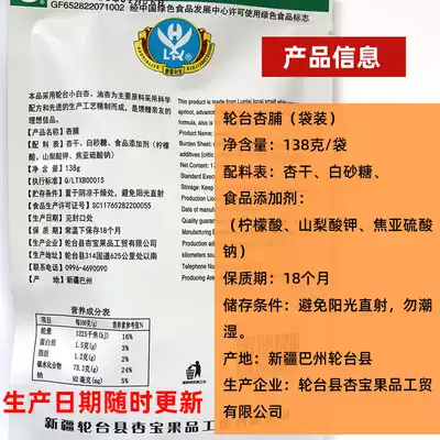 138 grams of dried apricots 5 bags 168 grams of dried apricots 5 bags of dried apricots Mixed with dried apricots 5 bags (remarks can be made)80 grams of dried apricots 10 bags 138 grams of dried apricots×3 bags