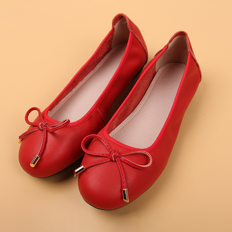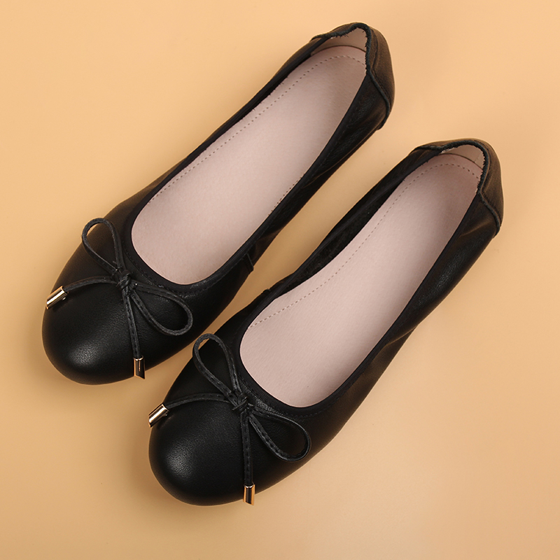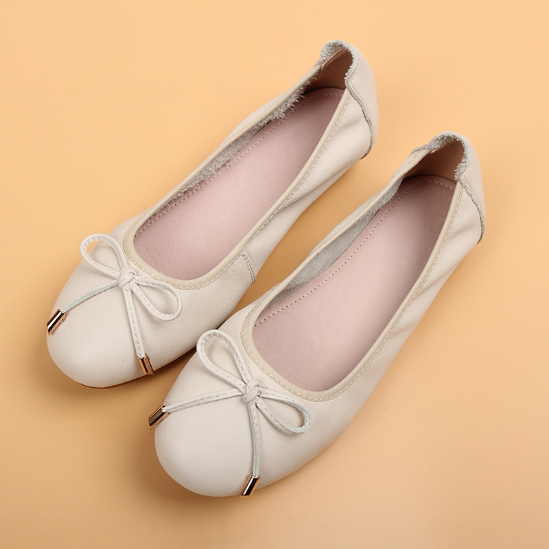 2020 new Doudou shoes egg roll leather soft bottom comfortable flat scoop boat mom folding lightweight work single shoes women