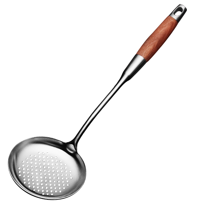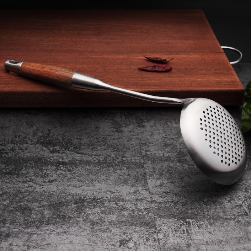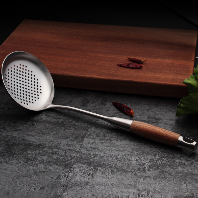 Guofeng 304 stainless steel colander kitchen household thickened wooden handle hollow heat insulation anti-scalding noodles spoon