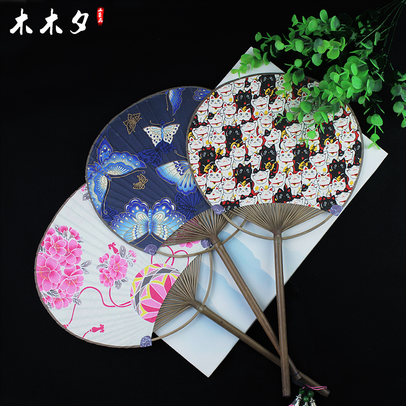 Japan-style wind and kimono bifacial fan group fan Japanese cotton fabric floral burqa handmade COS photo ensemble fan palace fan