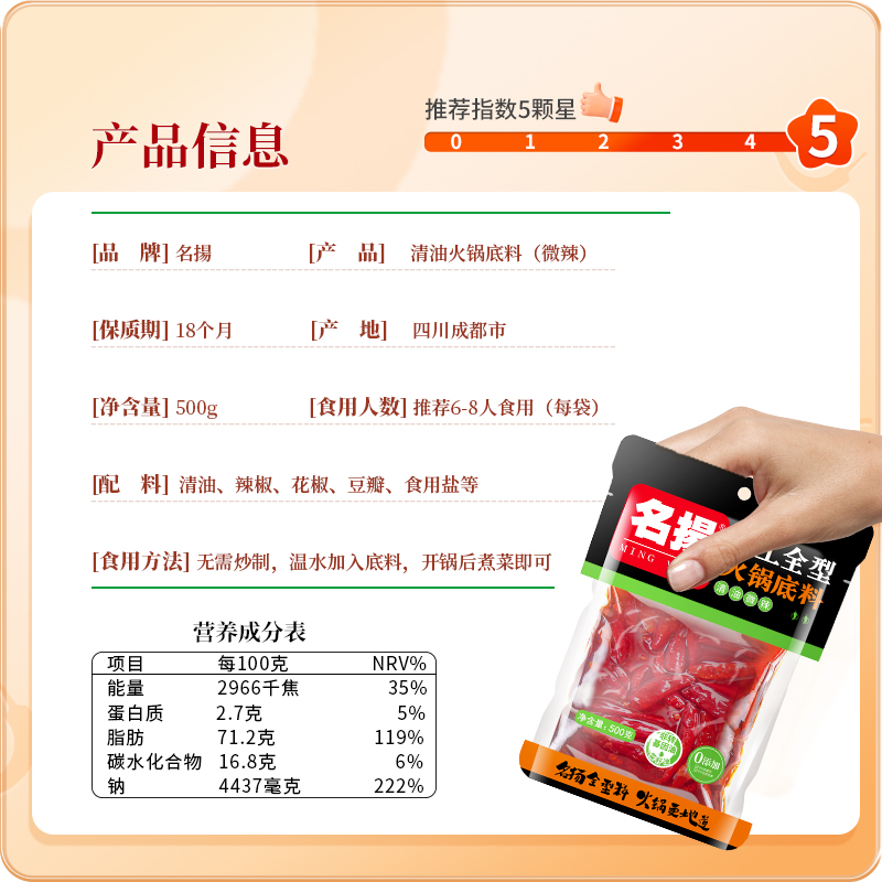 Famous Yangqing Oil Slightly Spicy Hot Pot Soup Bottom 500g * 2 Manual full-type spicy hot and fragrant pot stock