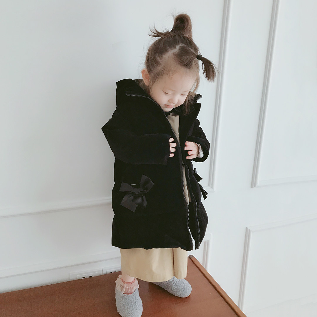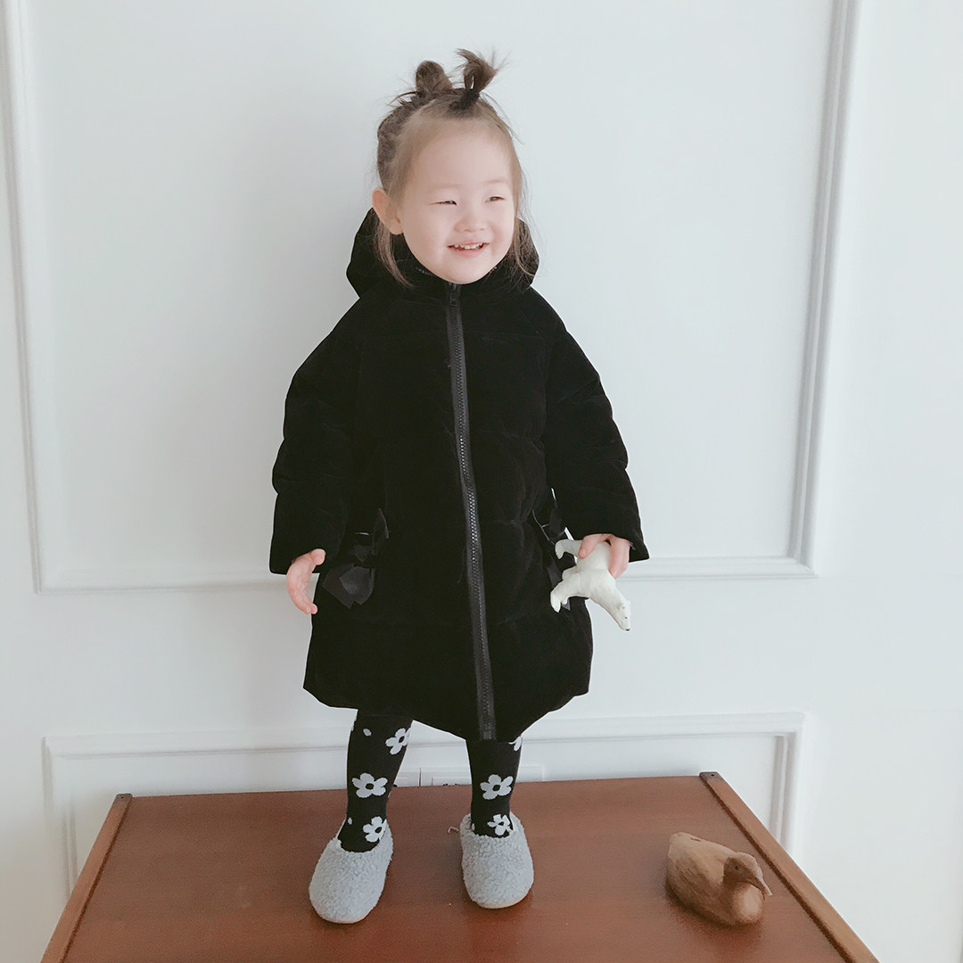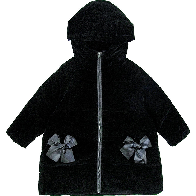 Original Children Clothing Black Tandem Hat Down Jacket Imakokoni Cute Thickening Medium Long Version Coat Girl Winter 0155