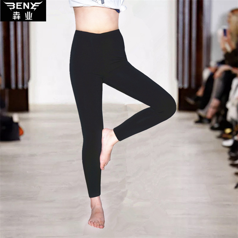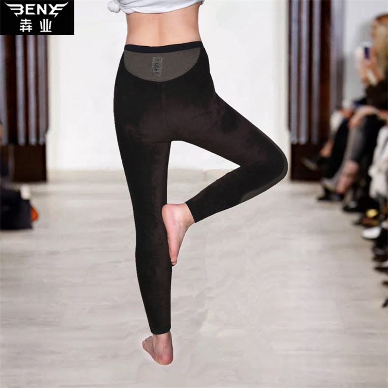 Benye winter women's warm pants with smooth surface and velvet heating plus knee pads black leggings cotton pants Q9153