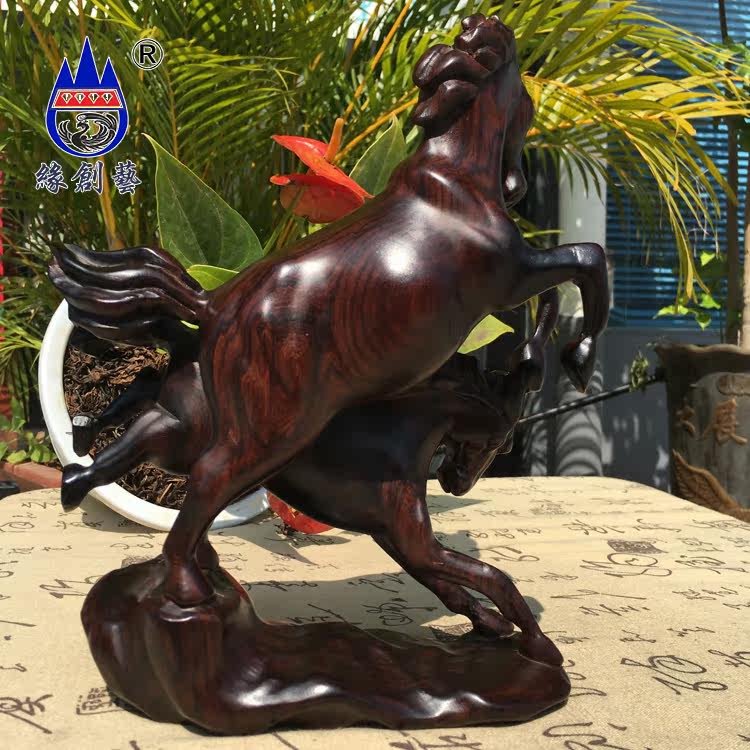 Yuanchuangyi Burmese black acid branch solid wood carving horse to successful decoration mahogany zodiac horse hand-carved craft gift decoration