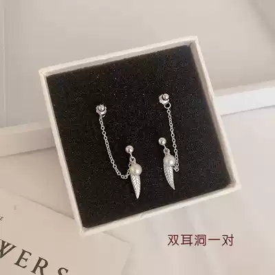 Original detachable double ear hole earrings full body 925 sterling silver personality earrings female Korean version one-piece two ear holes