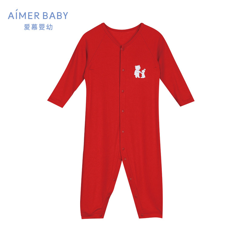 (Milk) AIMER children's infants and young children's New Year's red clothing newborn red jumpsuit Climbing suit