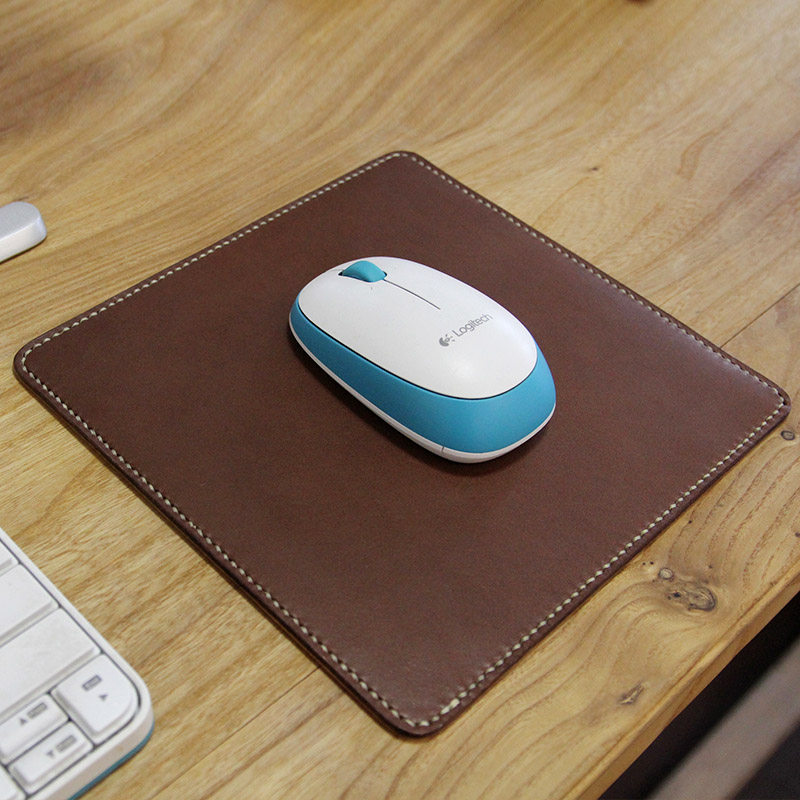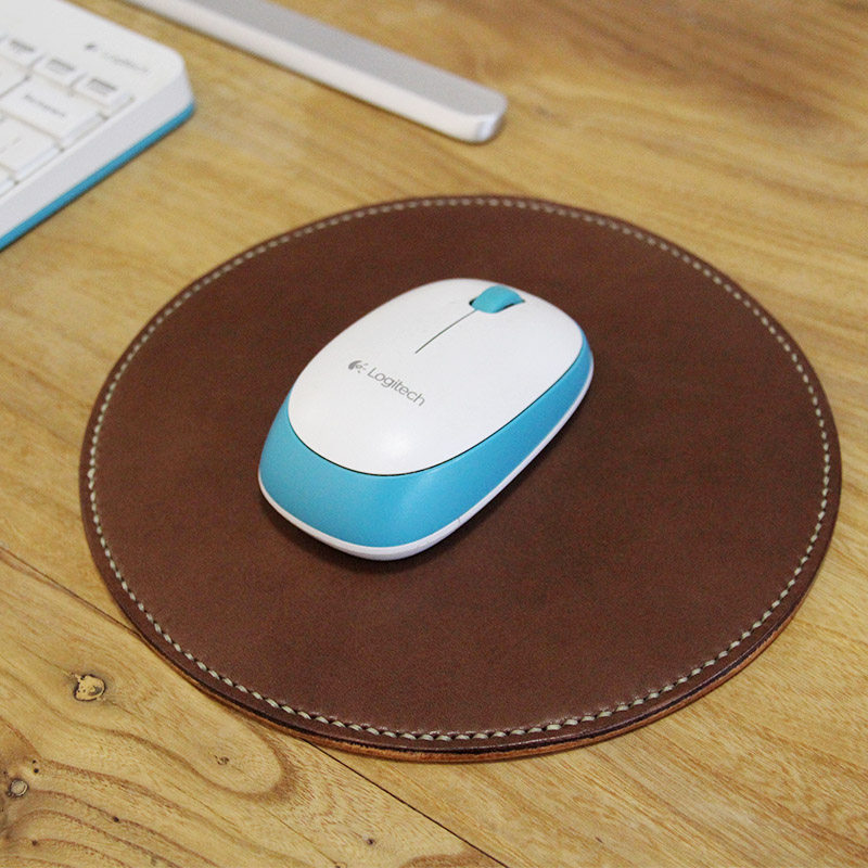 Slow work slider mat round plant tanning head layer cowhide square mouse mat splicing color double-sided cowhide hand sewn