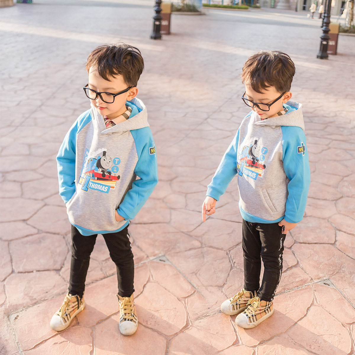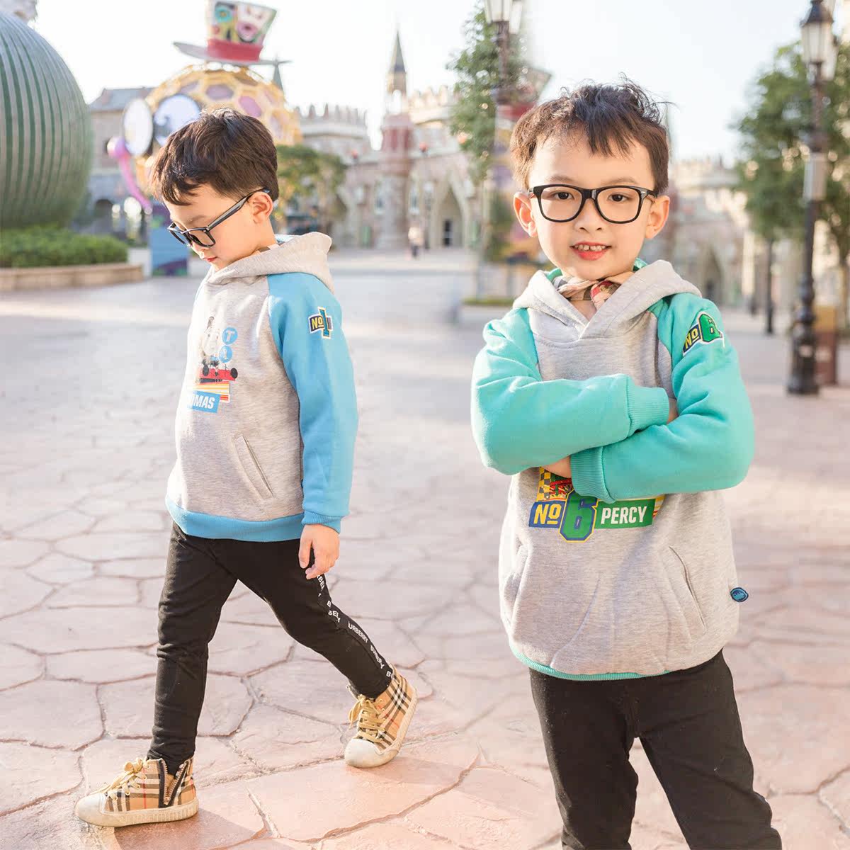 Boys and boys baby hooded fleece sweater autumn and winter high-quality children's thickened warm cartoon long-sleeved top trendy - Taobao