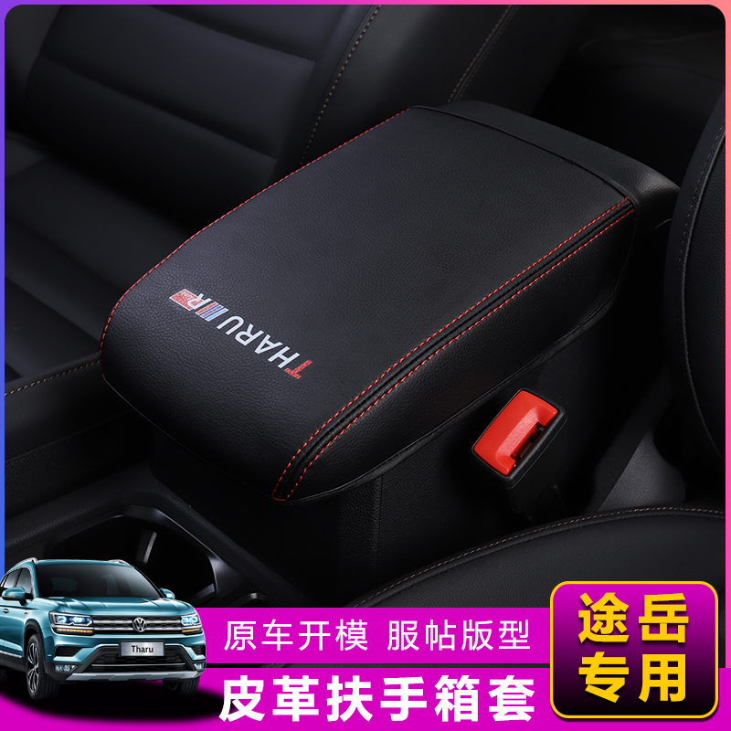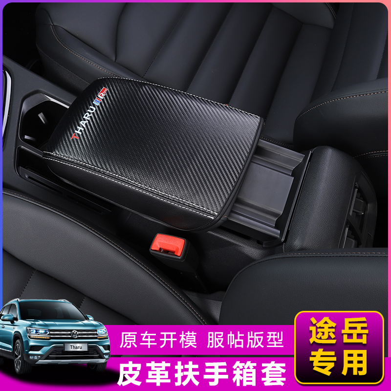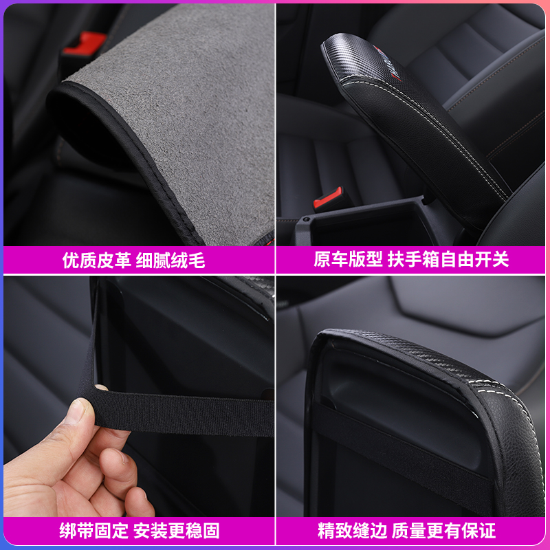 Road Yue genuine leather armrest box cover (carbon fiber white line) Genuine Leather Armrest Box Cover (black leather red line)