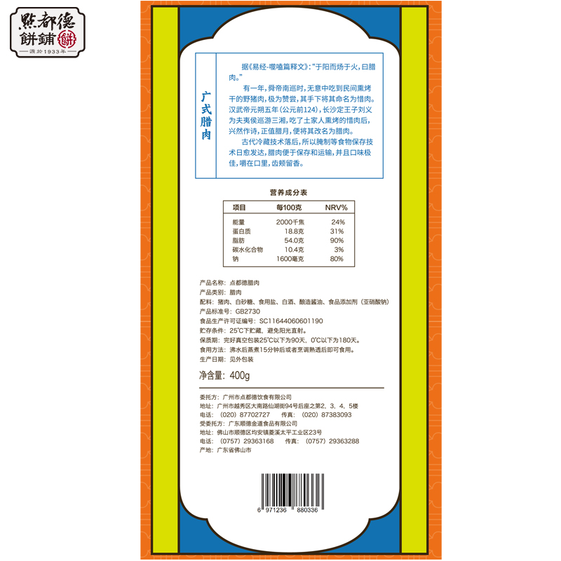 Diandude Cantonese-style bacon Guangdong specialty claypot rice special authentic cured meat 400g Guangzhou hand letter