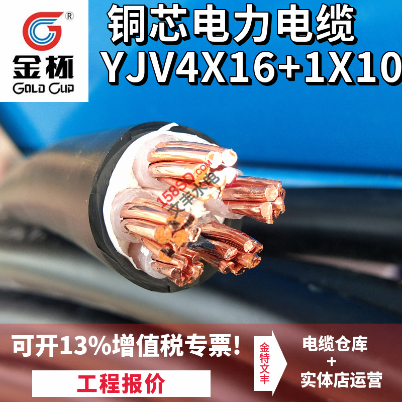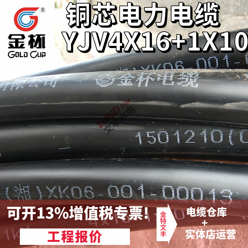 Golden Cup cable YJV4*16 1*10 square outdoor pure copper wire engineering electric power and cable core national standard