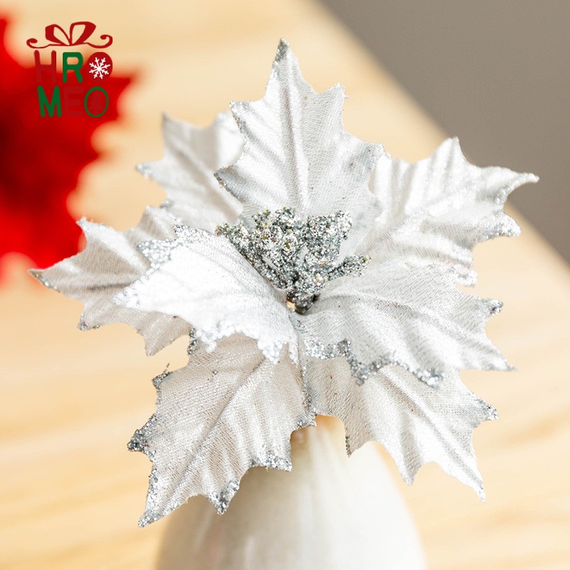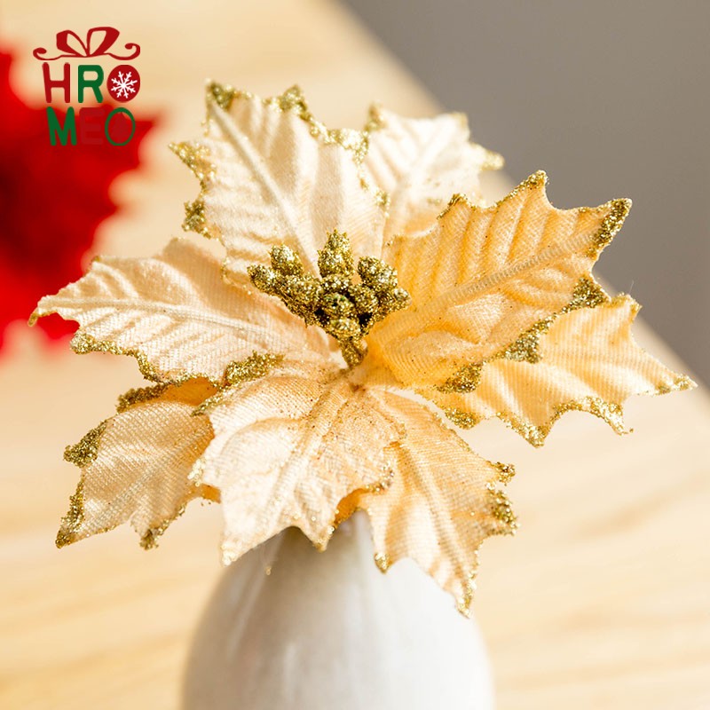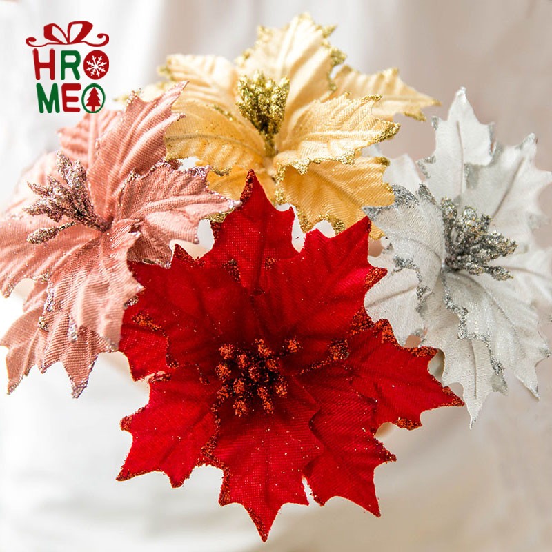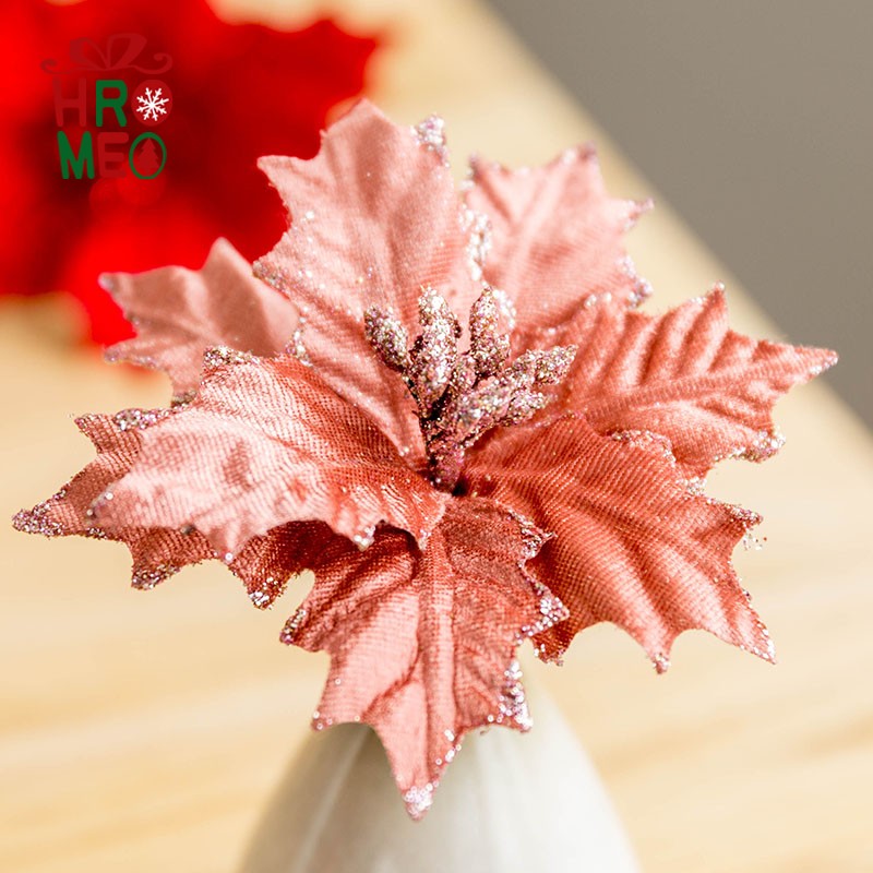 Hromeo 14cm handmade Christmas flower suede cloth emulation flower pink Christmas flowers DIY Christmas decorations