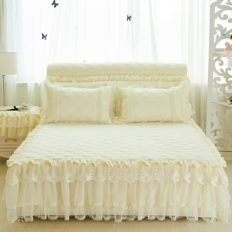 Korean version Princess wind clip cotton bed dress with four sets of lace lace bedcover style thickened 1 8x2m bed cover 4 pieces