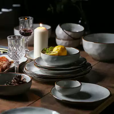 WUXIN retro Japanese tableware set Bowls and plates Household personality creative ins plates Plates Eating bowls Noodle bowls