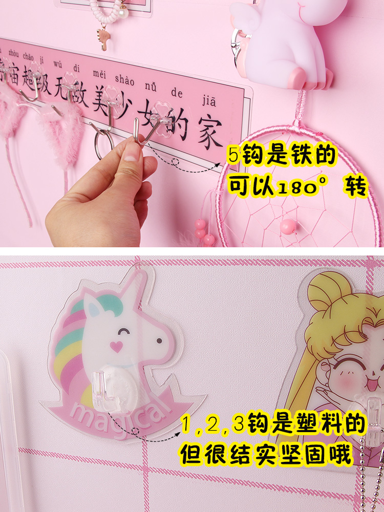 Cute incognito hook wall hanging decoration Student wall girl heart room decoration nail-free hook behind the door Dormitory female