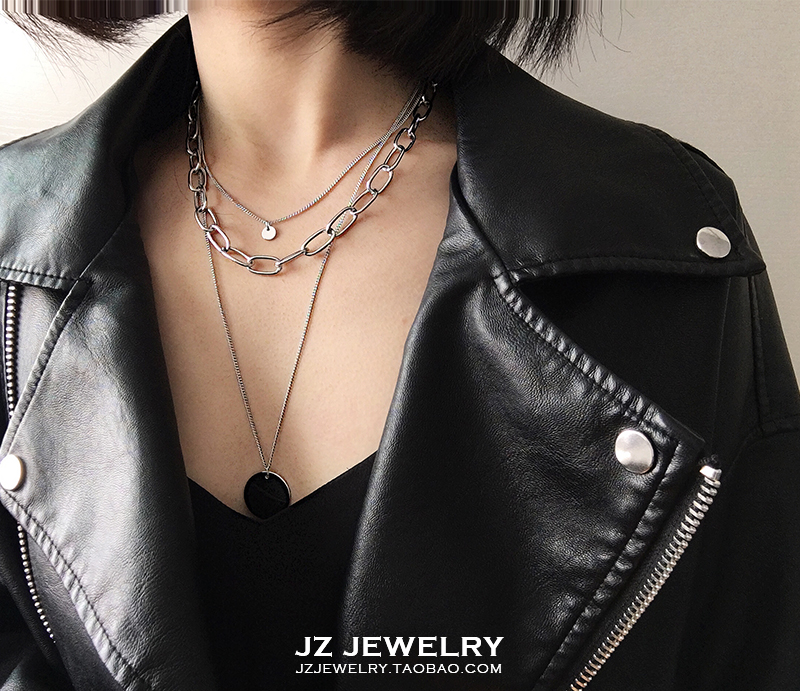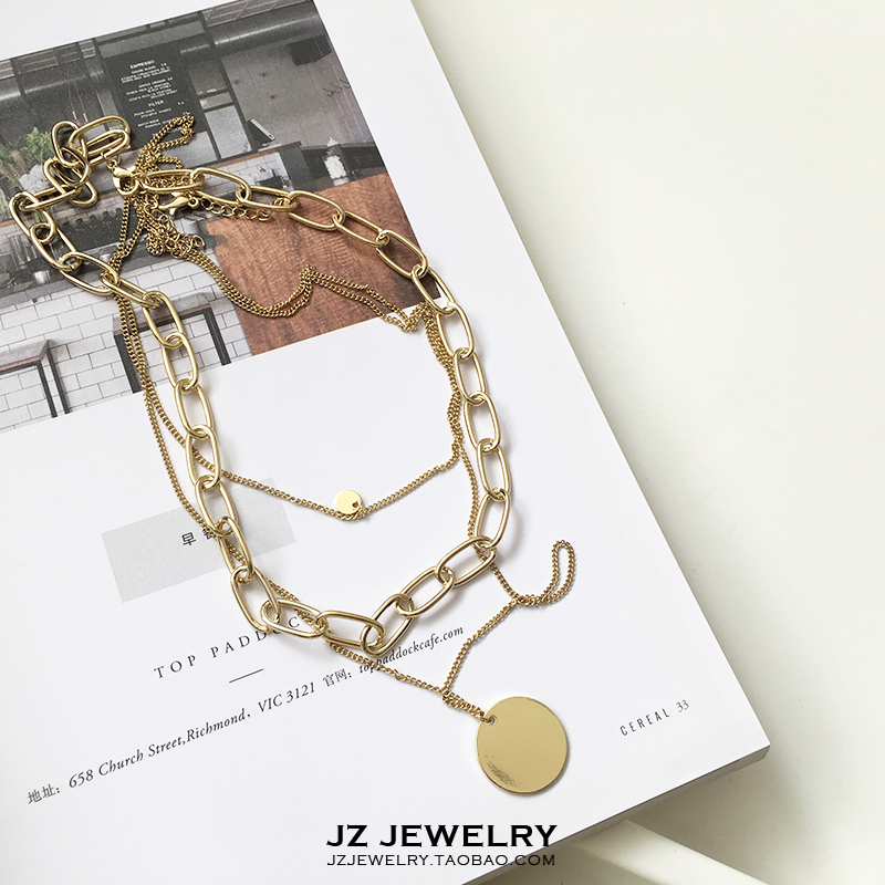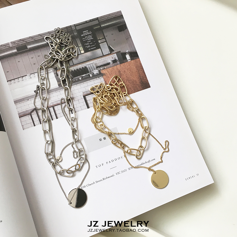 JZ Necklace European and American hip-hop chain clavicle chain Korean retro thick chain multi-layer coin long necklace female