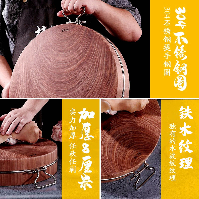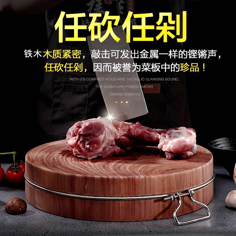 Iron wood cutting board solid wood home chopping block Chestnut Wood Case Plate Round Vegetable Pier Kitchen Old Iron Wood Thickened Chopped Vegetable Plate
