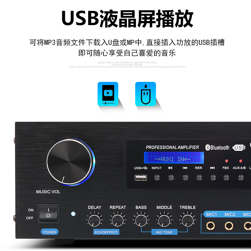 T2000 professional karaoke integrated power amplifier Carpacker anti-howl called Bluetooth Mixer Family KTV power amplifier