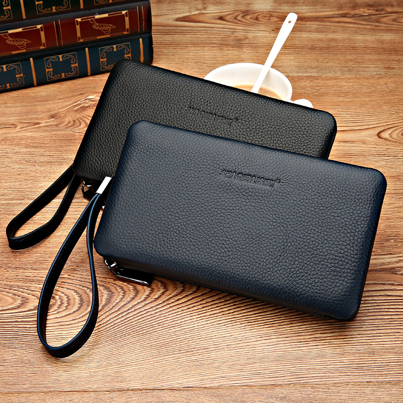 Chic kangaroo handbag male genuine leather wallet long version for men's hand grip Baotou layer Bull Leather Clip pull bracelet Handbag Tide