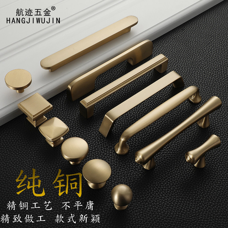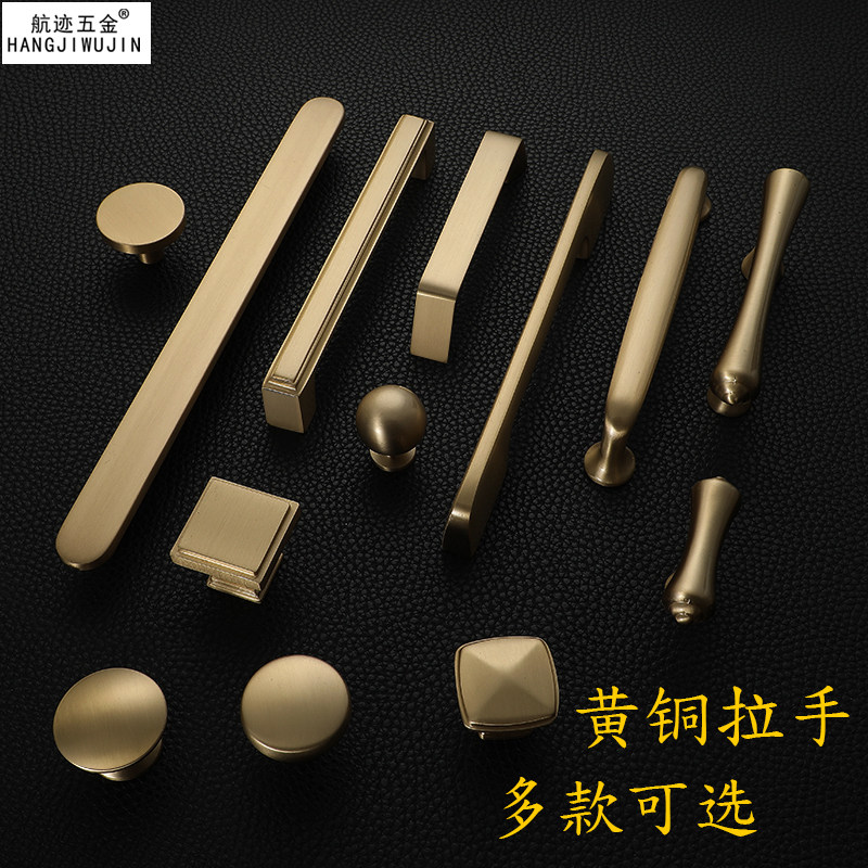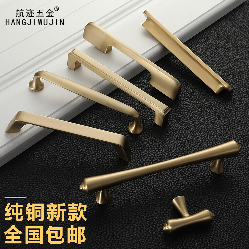 Golden light extravagant full copper pull handle modern minimalist brass big coat cabinet door overall cupboard drawer Nordic Chinese pure copper handle