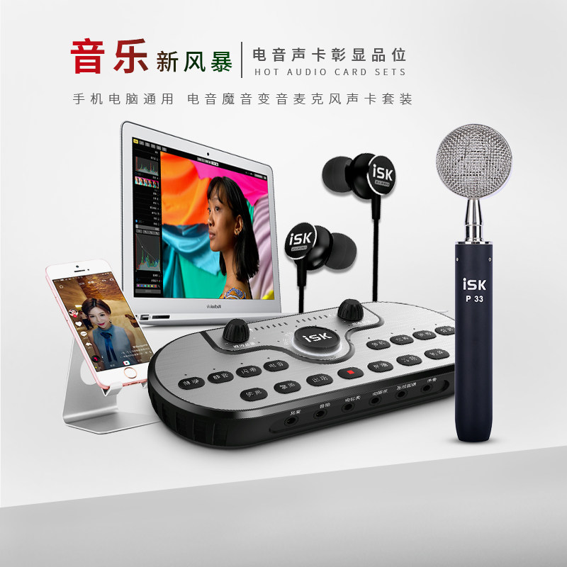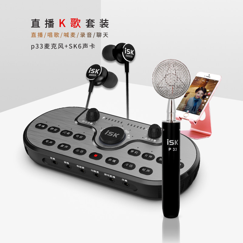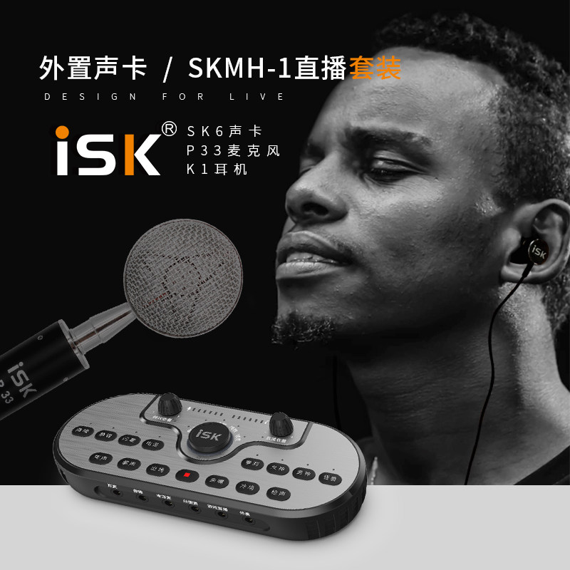 ISK SKMH-1 external sound card microphone set Mobile phone desktop computer notebook Universal karaoke fast flashlight Rong Mai anchor live singing shouting Mai recording microphone equipment full set