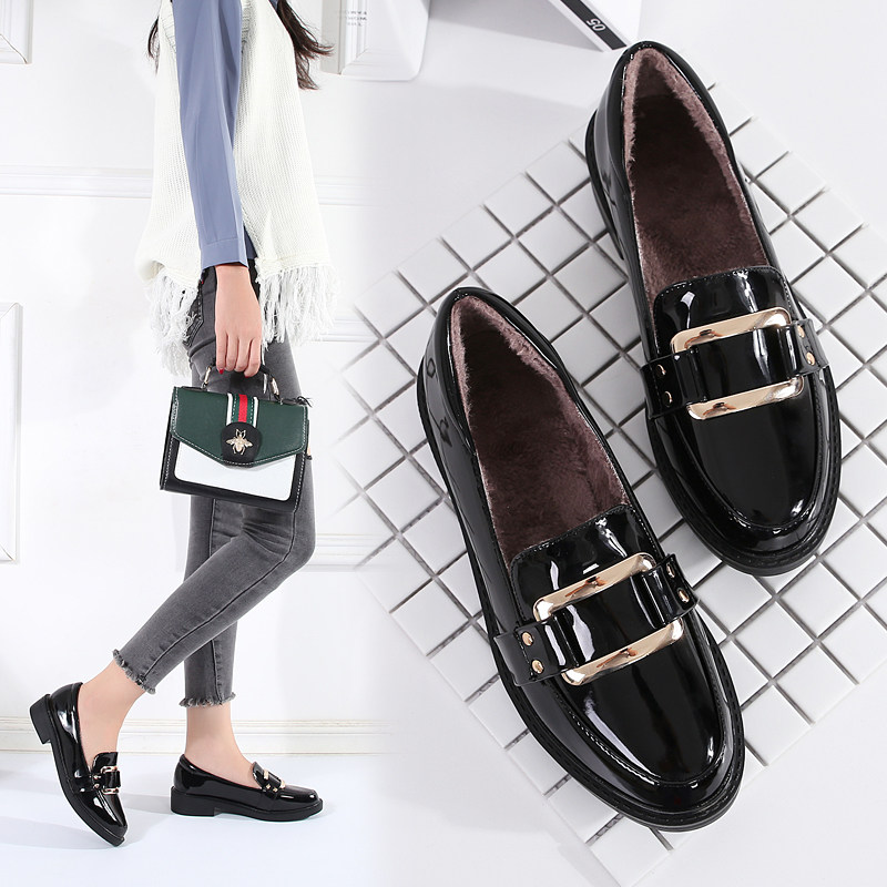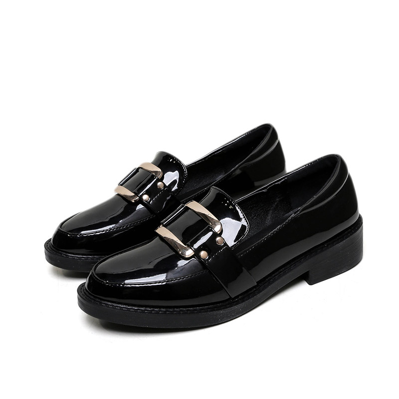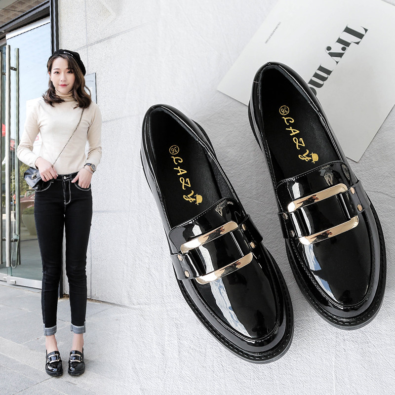 Small leather shoes women's British style black work and work flat all-match one-foot loafers women's shoes 2021 new