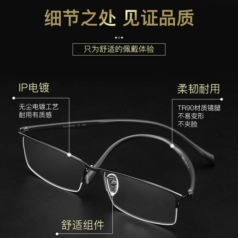 Myopia glasses men's anti-blue light glasses half frame comfortable glasses finished eye frame simple business myopia glasses