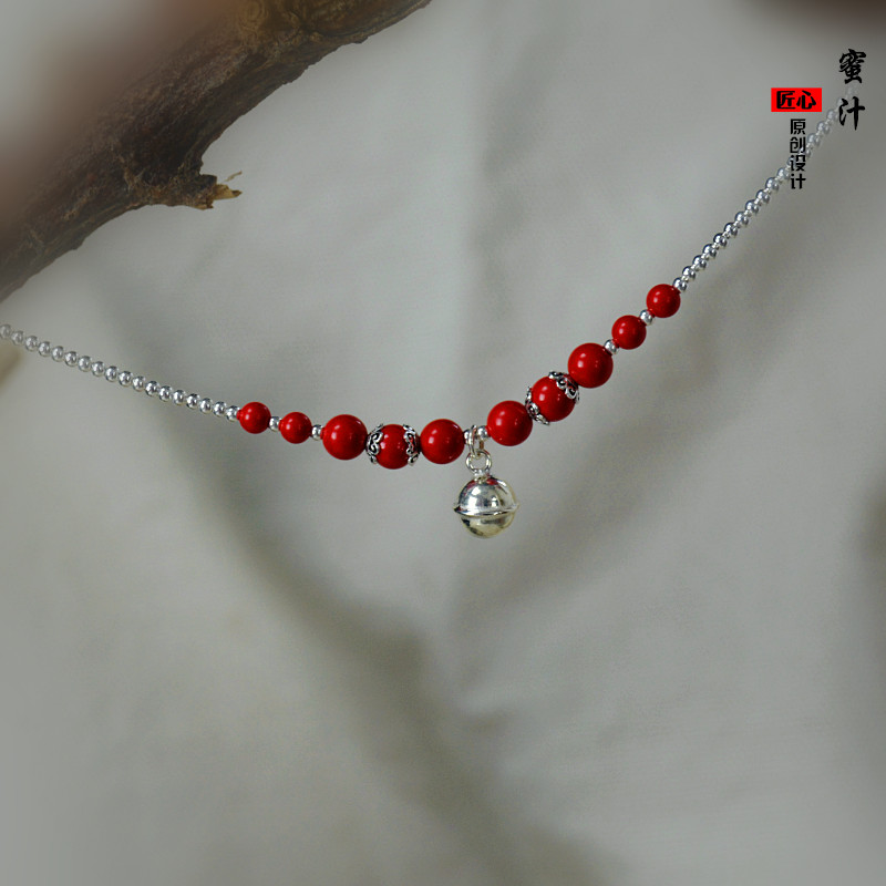 Chinese style hand chisel big red cinnabar skin white sterling silver bell with style personality decoration girlfriend girlfriend original gift
