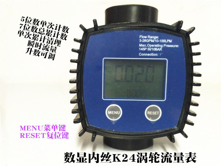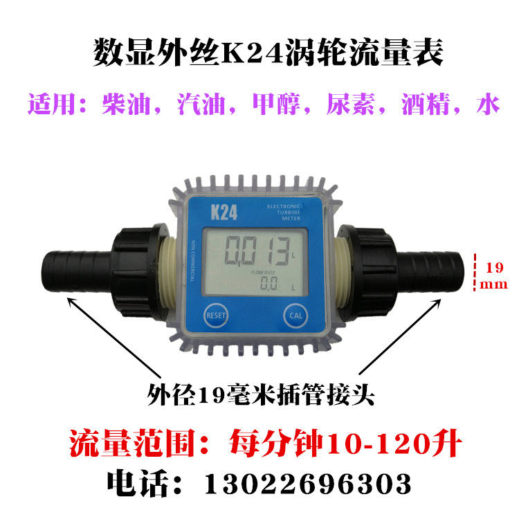 Turbine flow meter K24 digital display flow meter liquid diesel petrol methanol water 1 inch electronic flow meter