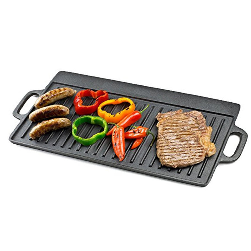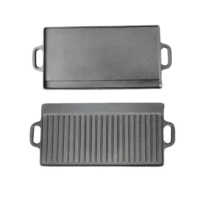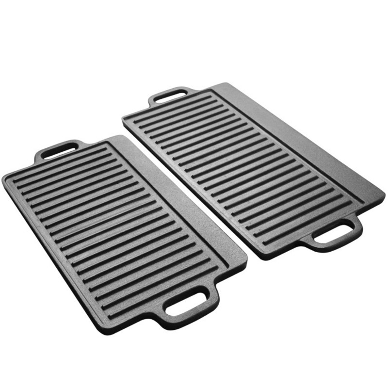 Millet outdoor cast iron plate baking pan slate barbecue commercial frying pan wild camping cookware barbecue pan 44cm