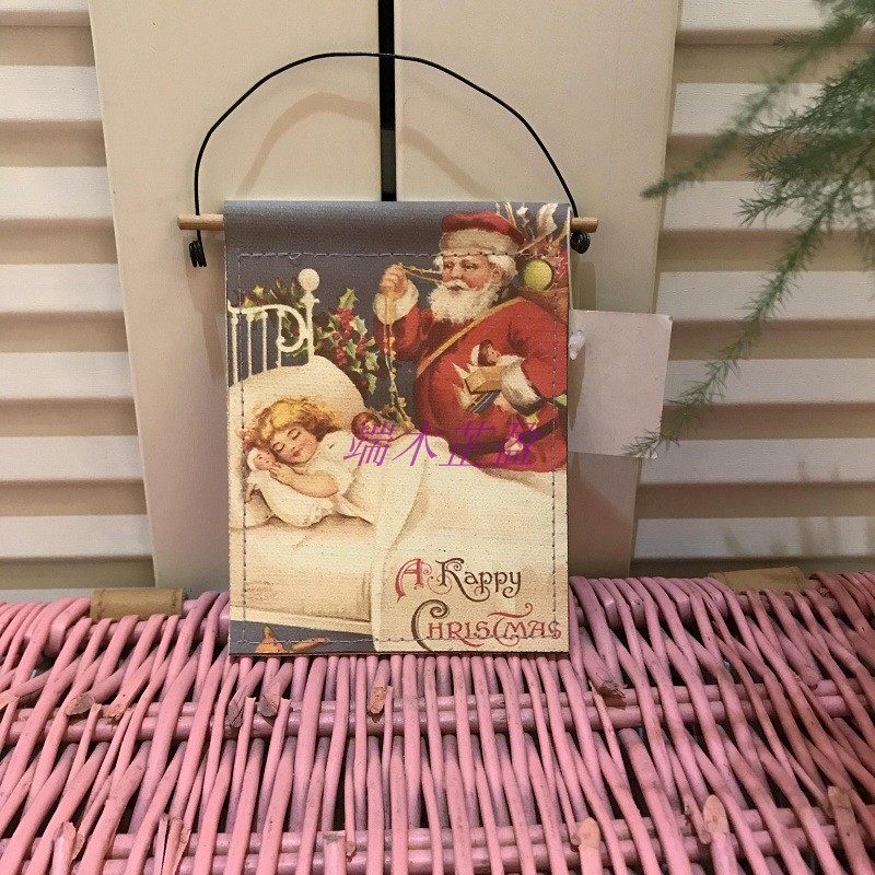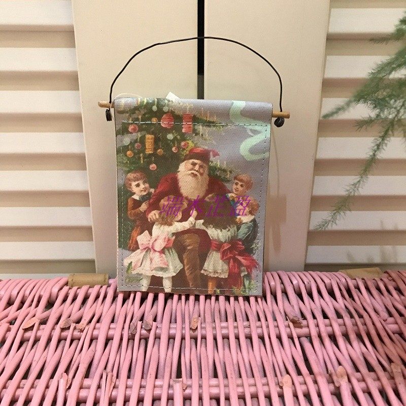 Christmas Christmas Eve retro canvas print Christmas bird Santa Claus small pendant small hanging painting