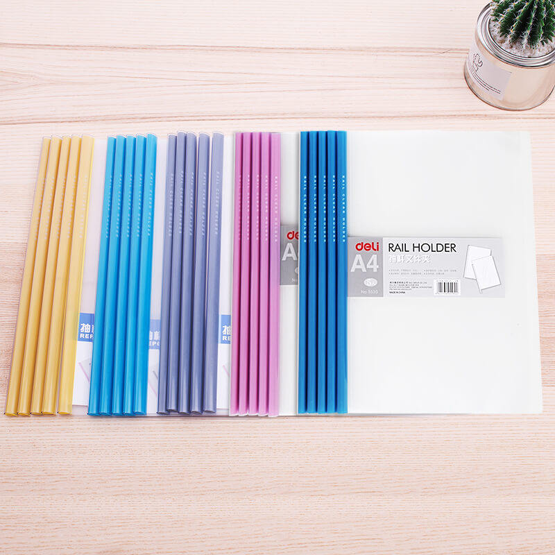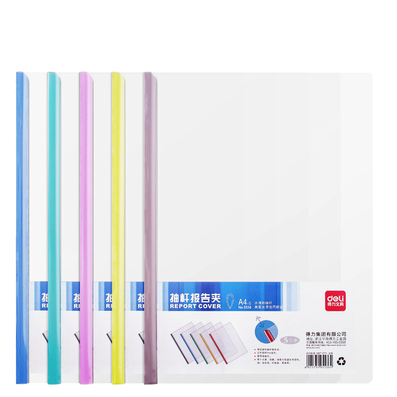 Deli 5538 color fashion drawer clip file transparent rod information clip plastic pull-on water drop rod A4 report clip