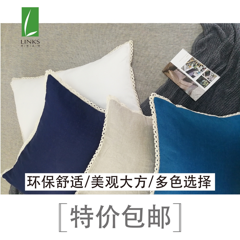 European imports 100% pure linen pillowcase breathable bacteriostatic pure colour single small lace pillowcase special price