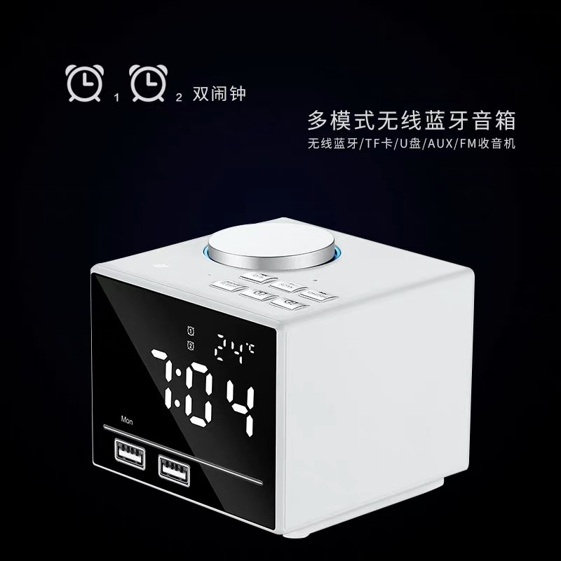 Wireless bluetooth speaker multi-function electronic alarm clock radio custom ringtone student mute bedside night light